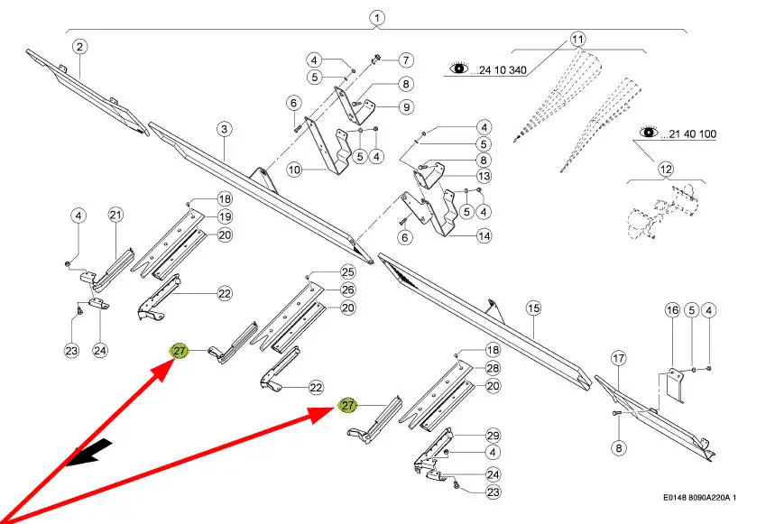 Oryginalna listwa przenośnika pochyłego o numerze katalogowym 0015010280, stosowana w maszynach rolniczych marki Class.