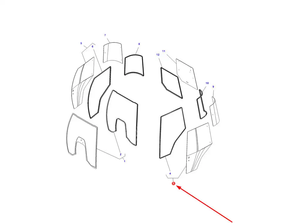 Oryginalna szyba drzwi lewych z uszczelką o numerze katalogowym 0043025200000, stosowana w ciągnikach rolniczych marek Massey Ferguson, Challenger oraz Valtra.