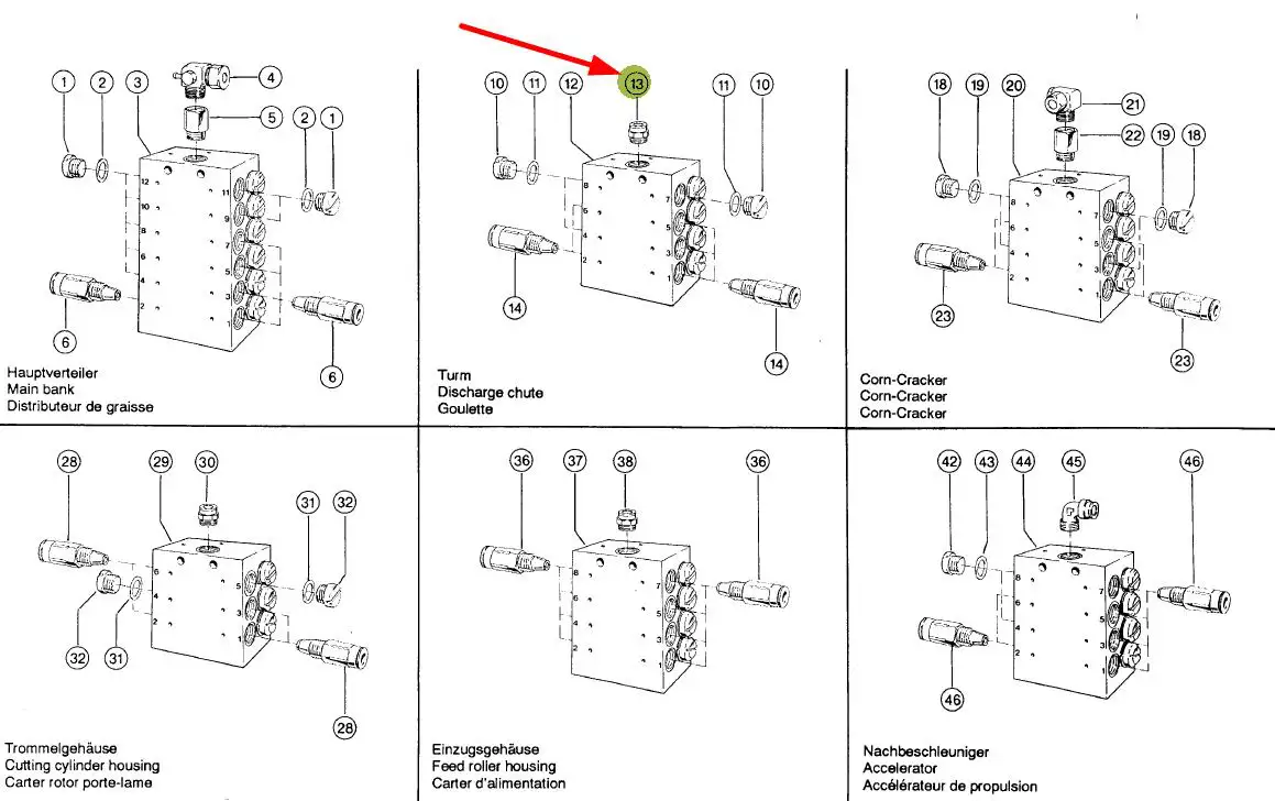 Oryginalne złącze gwintowane rozdzielacza o numerze katalogowym 078489.1, stosowane w prasach i sieczkarniach marki Jaguar.