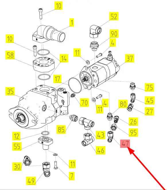 Oryginalny trójjnik hydrauliczny o numerze katalogowym 101472608, stosowany w kombajnach zbożowych marki Rostselmash.