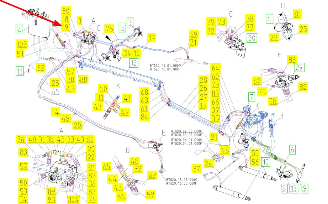 Oryginalny przewód hydrauliczny o numerze katalogowym 101477357, stosowany w kombajnach zbożowych marki Rostselmash.