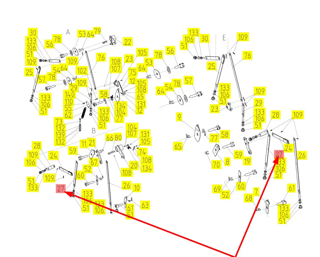 Oryginalny drążek regulacji klepiska o numerze katalogowym 101775769, stosowany w kombajnach zbożowych marki Rostselmash.