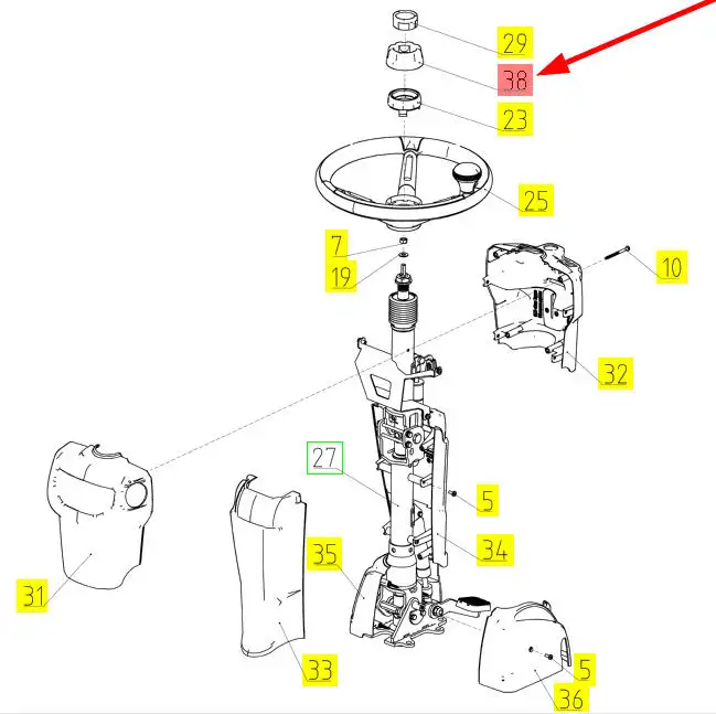 Oryginalne pokrętło kierownicy o numerze katalogowym 101864926, stosowwane w kombajnach zbożowych marki Rostselmash.