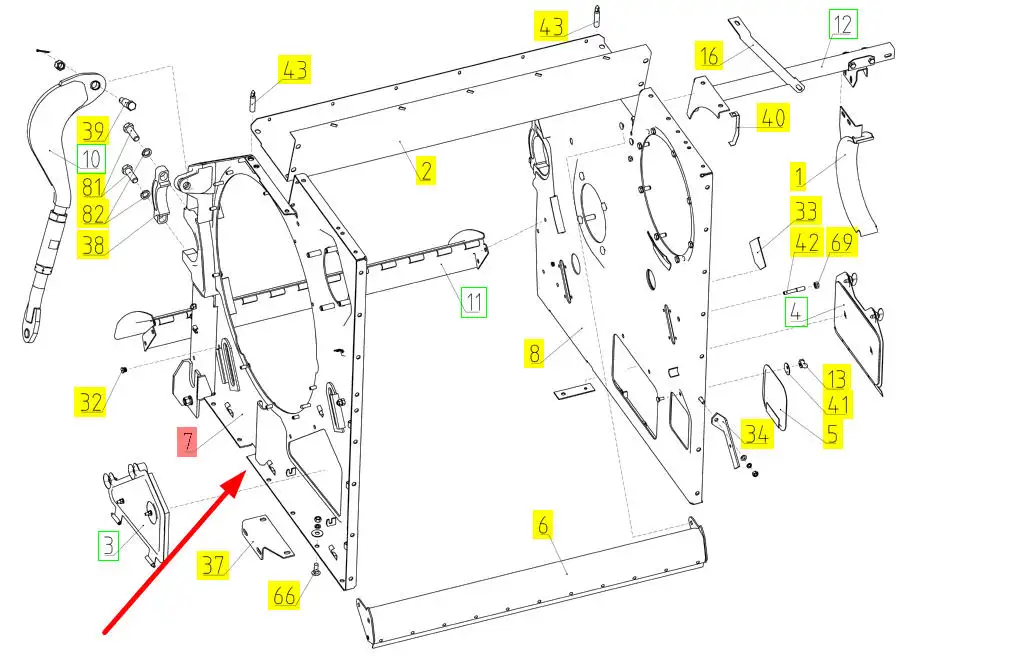 Oryginalny lewy panel obudowy młocarni Vector o numerze 102164880, stosowany w kombjnach zbożowych marki Rostselmash.