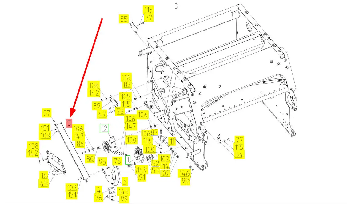 Oryginalna prowadnica o numerze katalogowym 102240477, stosowana w kombajnach zbożowych marki Rostselmash.