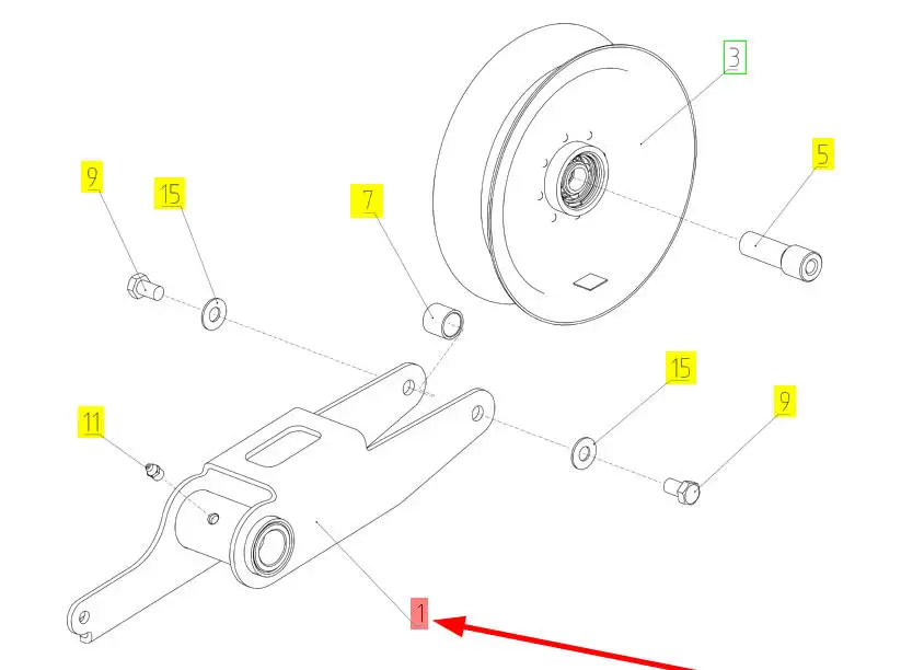 Oryginalny uchwyt koła napinającego o numerze katalogowym 102436093, stosowany w kombajnach zbożowych marki Rostselmash.