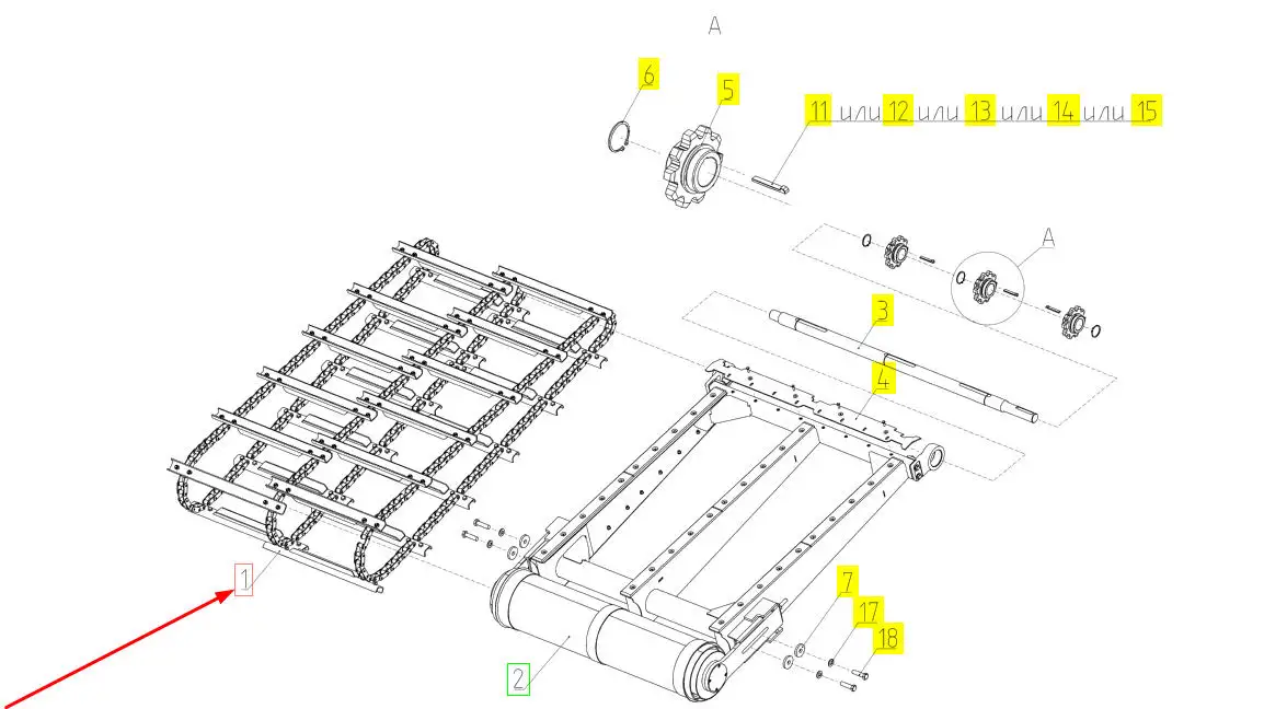 Oryginalny, kompletny łańcuch przenośnika pochyłego o numerze katalogowym 102502983, stosowany w kombajnach zbożowych marki Rostselmash.