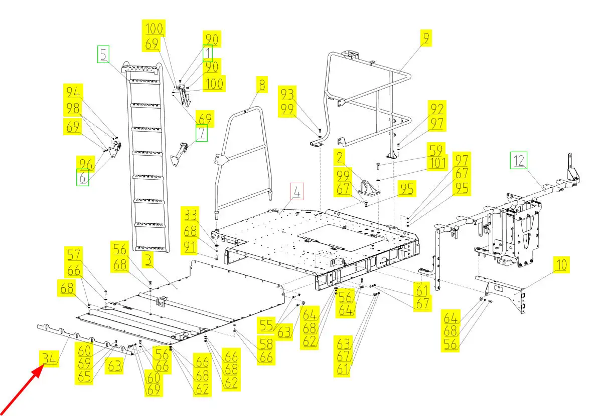 Oryginalny kątownik podłogi komory silnika o numerze katalogowym 102597510, stosowany w kombajnach zbożowych marki Rostselmash.