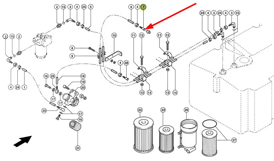 Oryginalne złącze przewodu paliwowego o numerze katalogowym 142212.0, stosowane w sieczkarniach samojezdnych marki Claas.