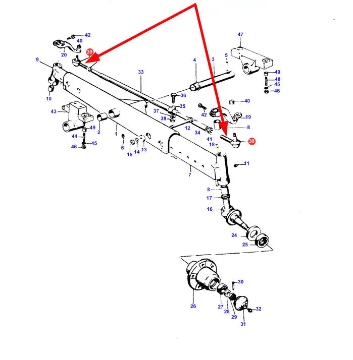 Oryginalna końcówka drążka kierowniczego napędu przedniej osi, stosowana w ciągnikach marki Massey Ferguson.
