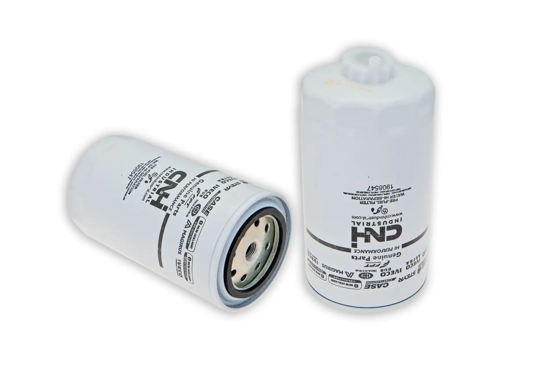 Filtr paliwa z separatorem puszkowy o numerze katalogowym 1908547, stosowany w maszynach rolniczych marek Massey Ferguson, Laverda, Challenger, Fendt.