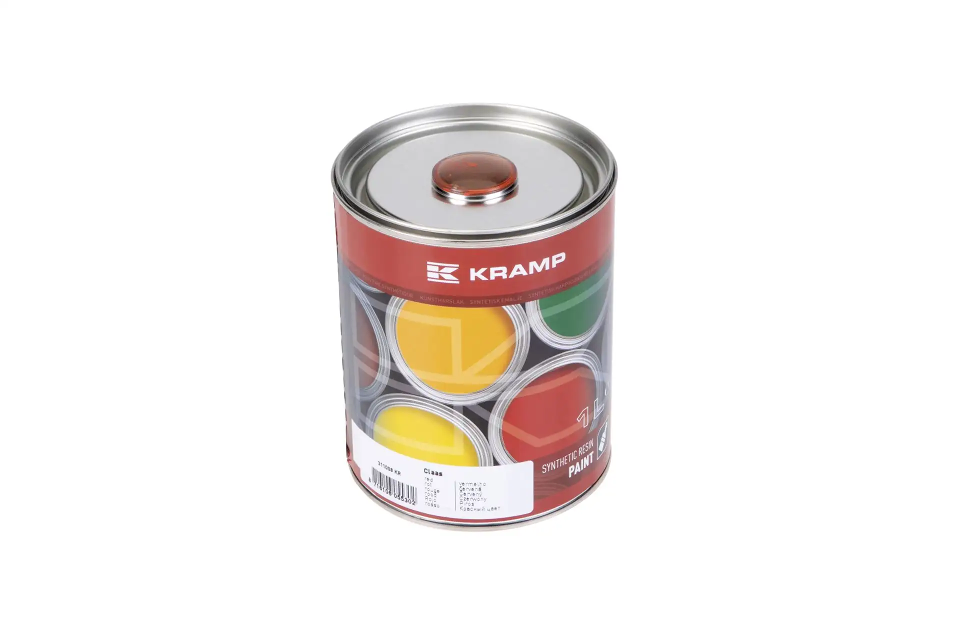 Farba koloru czerwonego, w opakowaniu o pojemności 1l, z numerem katalogowym 311008KR, stosowana do malowania maszyn i pojazdów rolniczych marki Claas.
