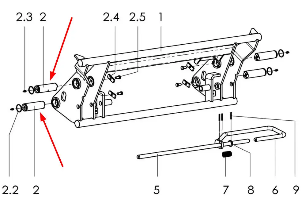 Oryginalny sworzeń do wahacza i systemu podnoszenia równoległego o wymiarach 40 X 124 mm, stosowany w ładowaczach marki Stoll.