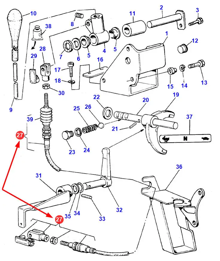 Oryginalna linka skrzyni biegów, o numerze katalogowym 3553774M95, stosowany w ciągnikach rolniczych marki Massey Ferguson.