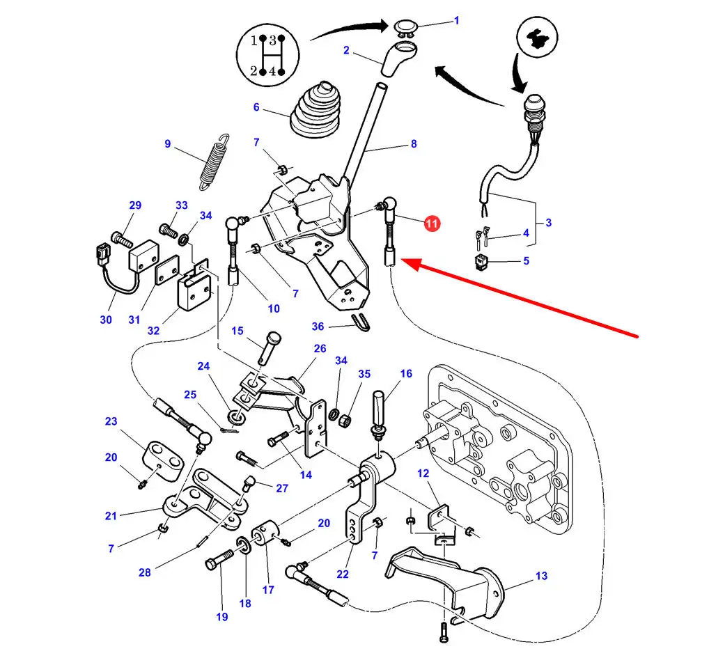 Oryginalna linka zmiany biegów o numerze katalogowym 3786476M2, stosowana w ciągnikach rolniczych marek Challenger i Massey Ferguson.