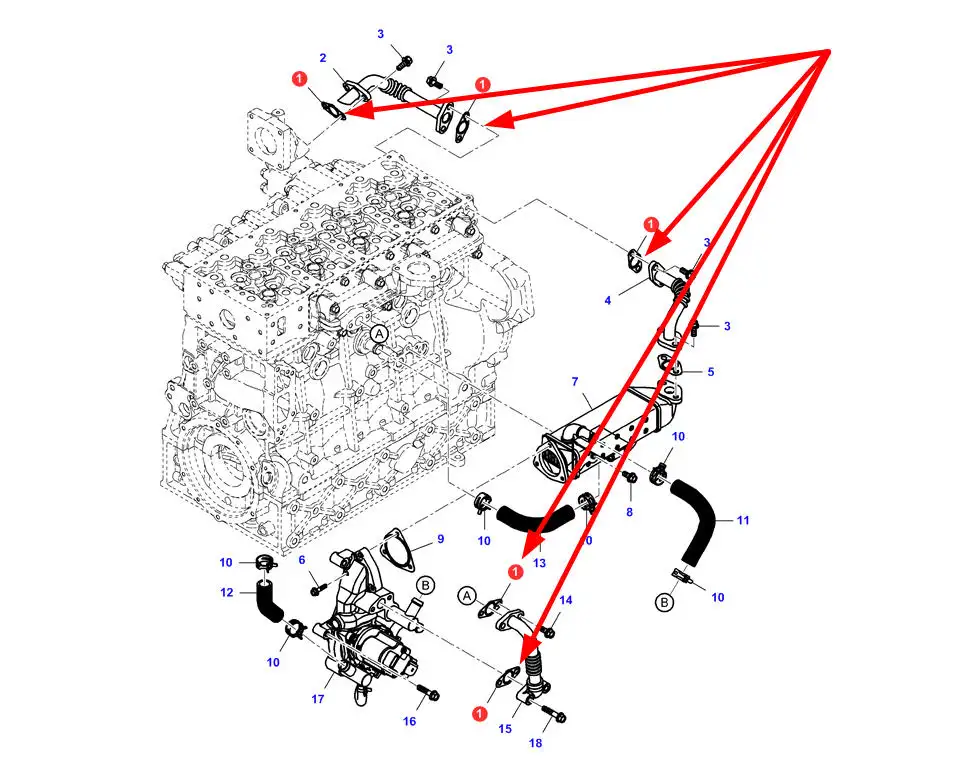 Oryginalna uszczelka układu EGR o numerze katalogowym 3975538M1, stosowana w ładowarkach teleskopowych marki Massey Ferguson.
