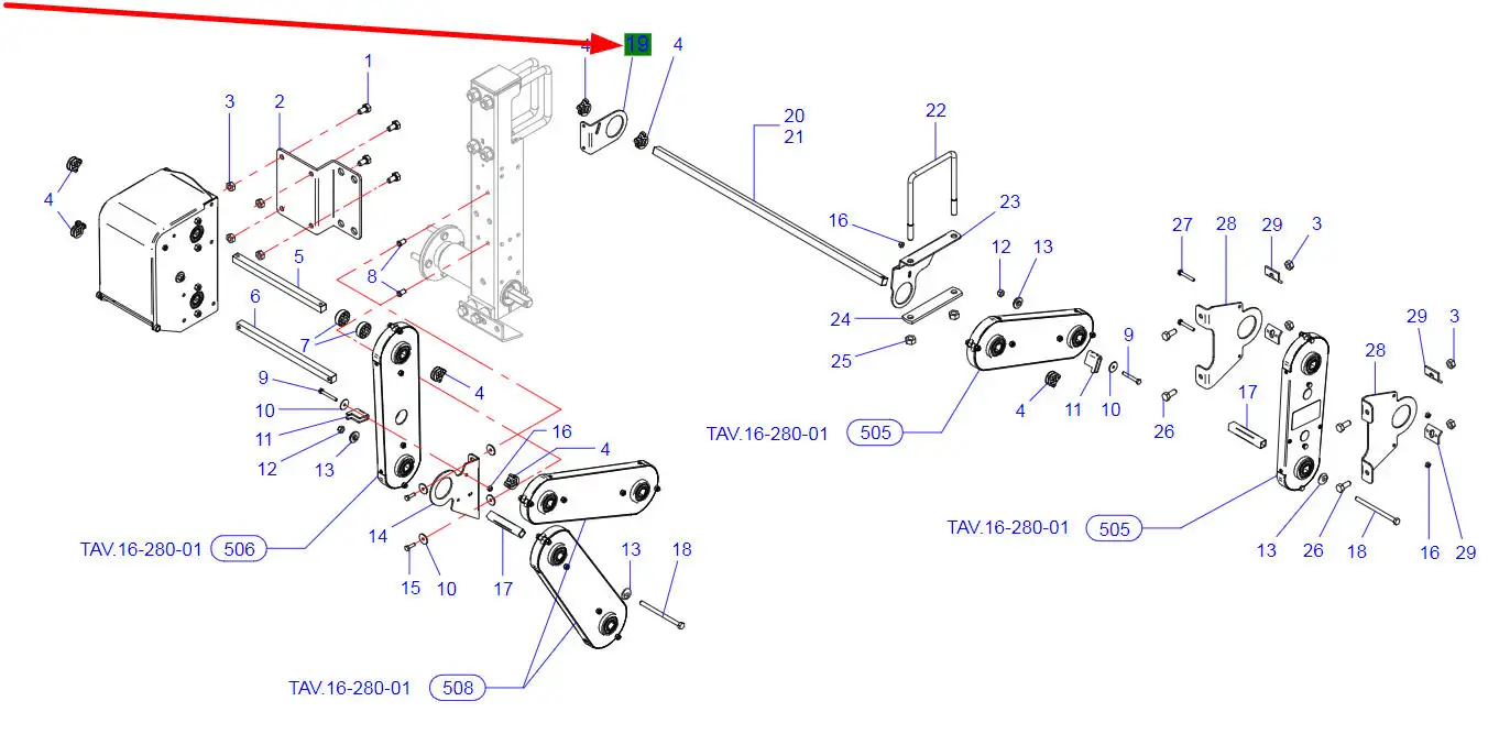 Oryginalny wspornik napędu łańcuchowego o numerze katalogowym 40203408VB, stosowany w siewnikach punktowych marki Matermacc, Arbos.