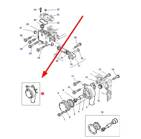 Oryginalna pompa wodna o numerze katalogowym 4223109M91, stosowana w ciągnikach rolniczych marki Massey Ferguson.
