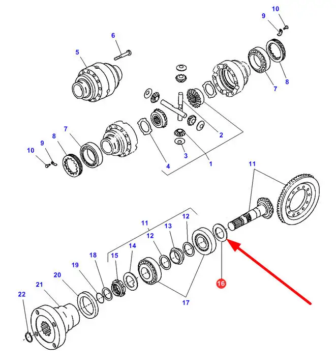 Oryginalna podkładka dystansowa mechanizmu różnicowego o grubości 3,30 mm i numerze katalogowym 4232307M1, stosowana w ładowaczach teleskopowych marki Massey Ferguson.