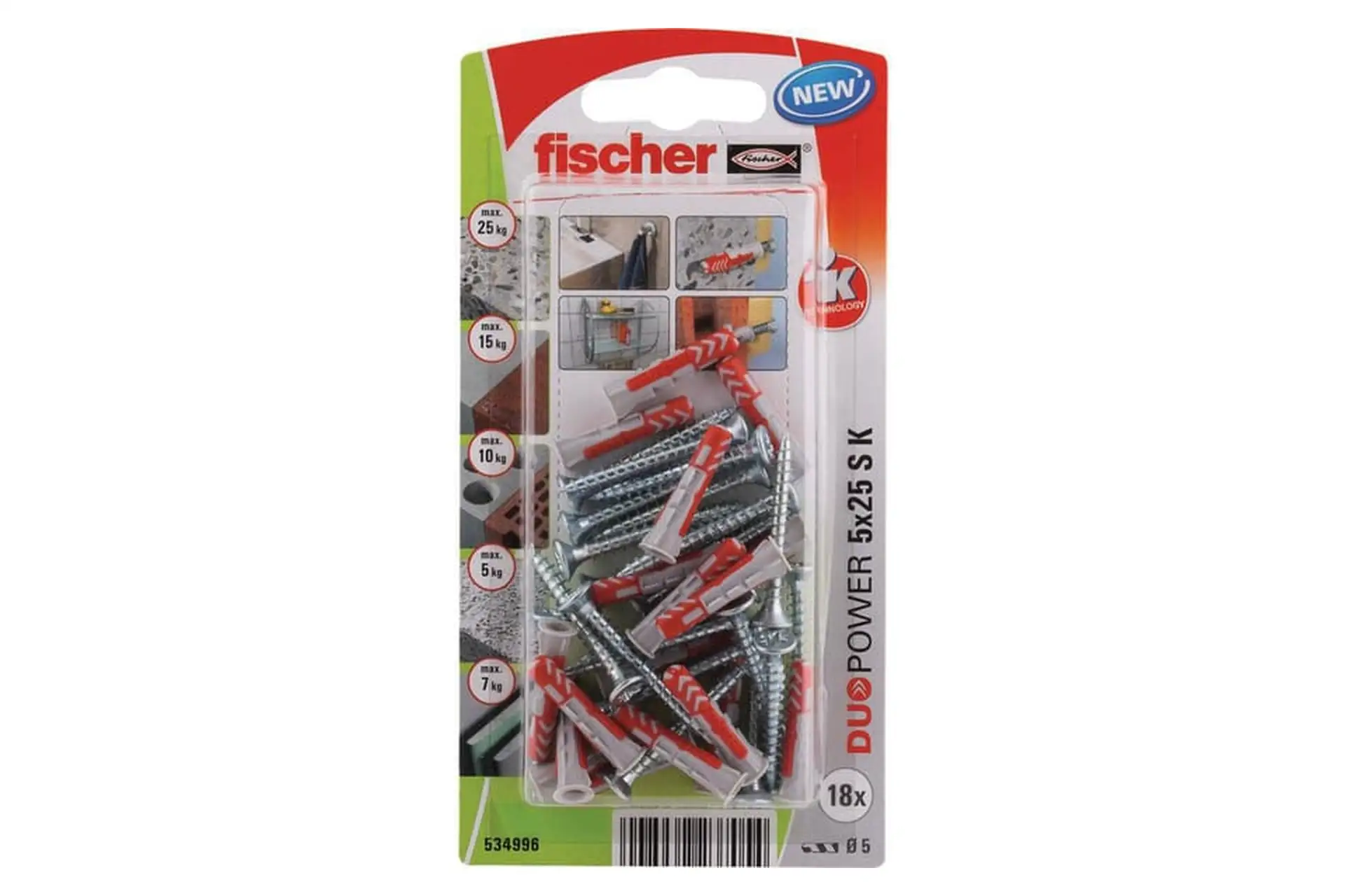 Kołek rozporowy Duopower 5×25 mm z wkrętem S K 18 szt.