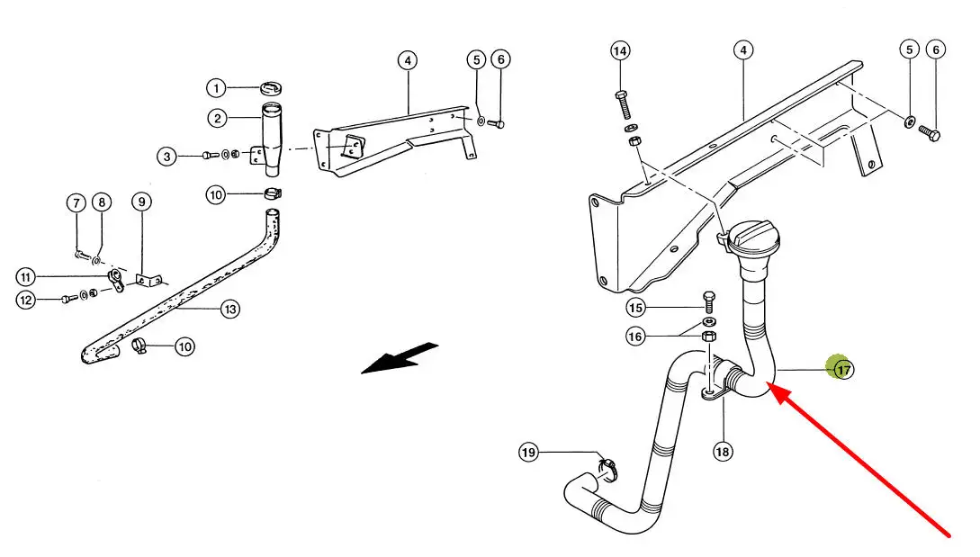Oryginalna rura wlewu oleju do silnika wraz korkiem, stosowana w maszynach rolniczych marki Claas