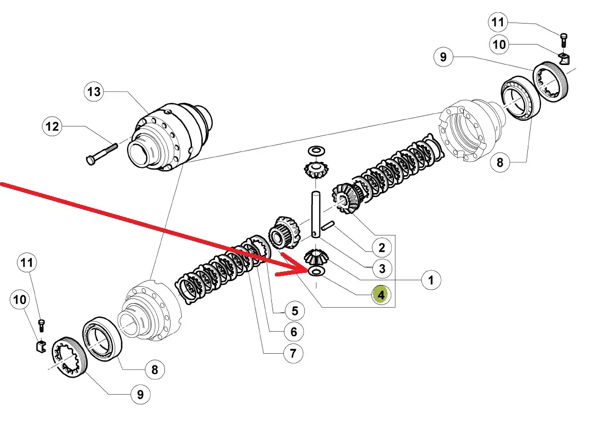 Oryginalna podkładka mechanizmu różnicowego przedniej osi o numerze katalogowym 6000100820, stosowana w ciągnikach rolniczych marki Claas, Renault.