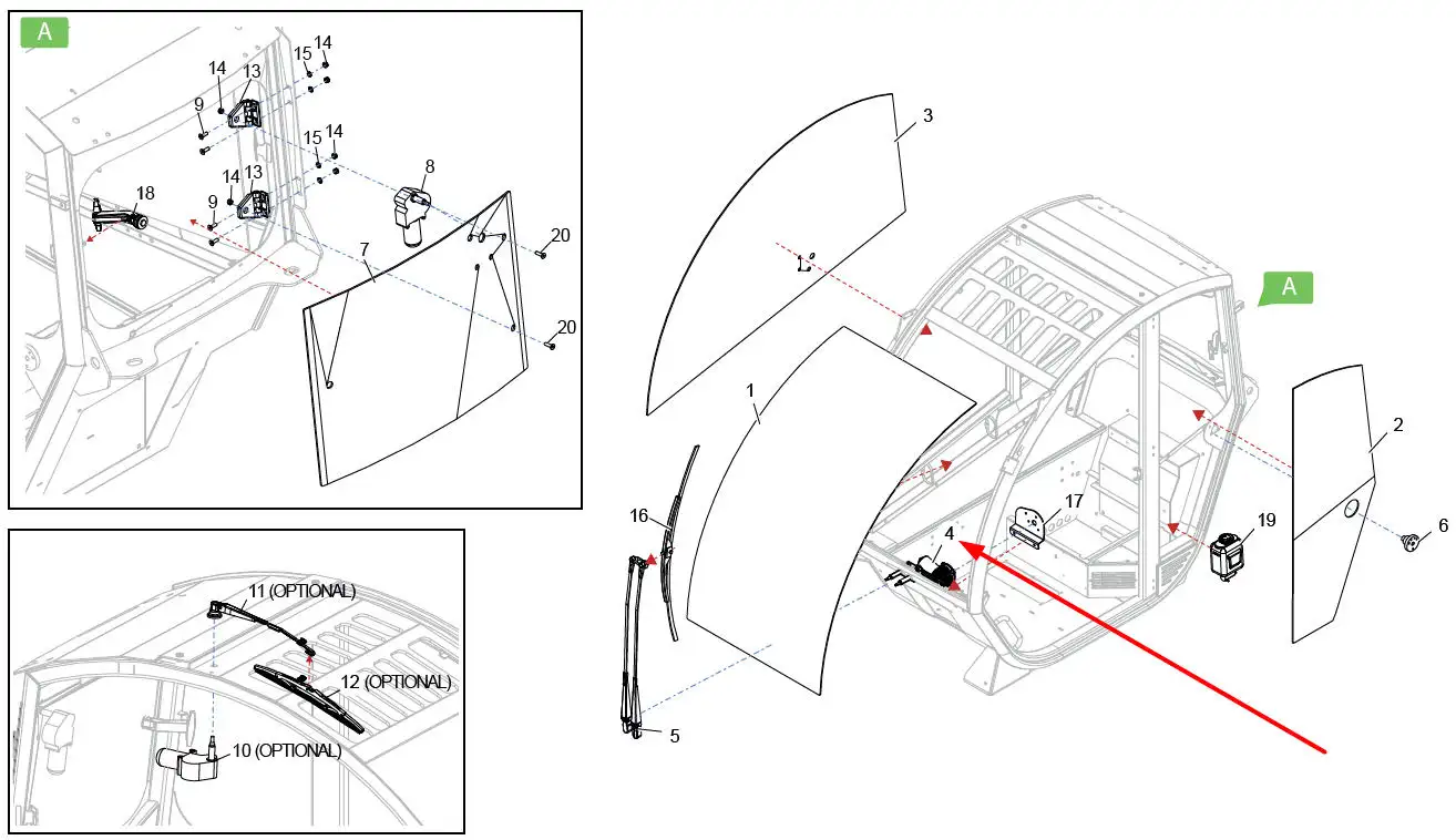 Oryginalny silniczek wycieraczek przednich wraz z mechanizmem 12V o numerze katalogowym 604072202, stosowany w ładowarkach marki Faresin.
