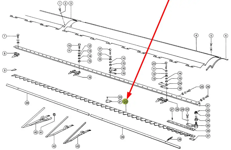 Kosa o długości 5,10 metra i numerze katalogowym 611214, stosowana w kombajnach zbożowych marki Claas.