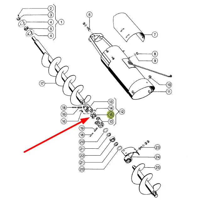 Oryginalny krzyżak ślimaka rury rozładowczej zbiornika ziarna o wymiarach 61 x 61 x 24 i numerze katalogowym 654587.0, stosowane w maszynach rolniczych marki Claas.