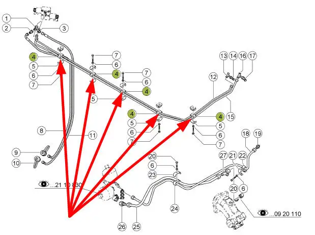 Oryginalny amortyzator gumowy przewodu hydraulicznego o numerze katalogowym 697807.0, stosowany w pojazdach rolniczych marki Claas.