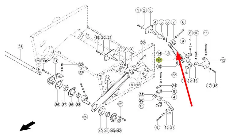 Oryginalny wahacz o numerze katalogowym 726266.0, stosowany w kombajnach zbozowych marki Claas.