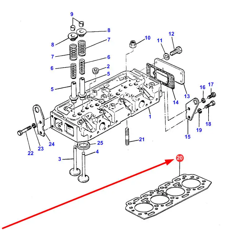 Oryginalna uszczelka głowicy silnika o numerze katalogowym 745730M1, stosowana w ciągnikach rolniczych marki Massey Ferguson.