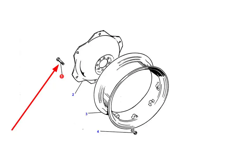 Oryginalna śruba łącząca tarczę koła z felgą o wymiarach 5/8 cal x 18G x L=72 mm i numerze katalogowym 828217M1, stosowana w ciągnikach rolniczych marki Massey Ferguson.