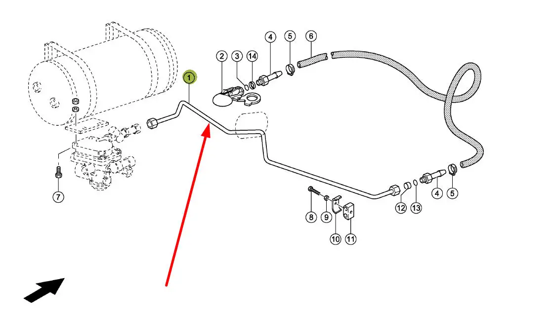 Oryginalny przewód pneumatycznego układu hamulcowego o numerze katalogowym 832574.0, stosowany w prasach kostkujących wielkogabarytowych marki Claas.