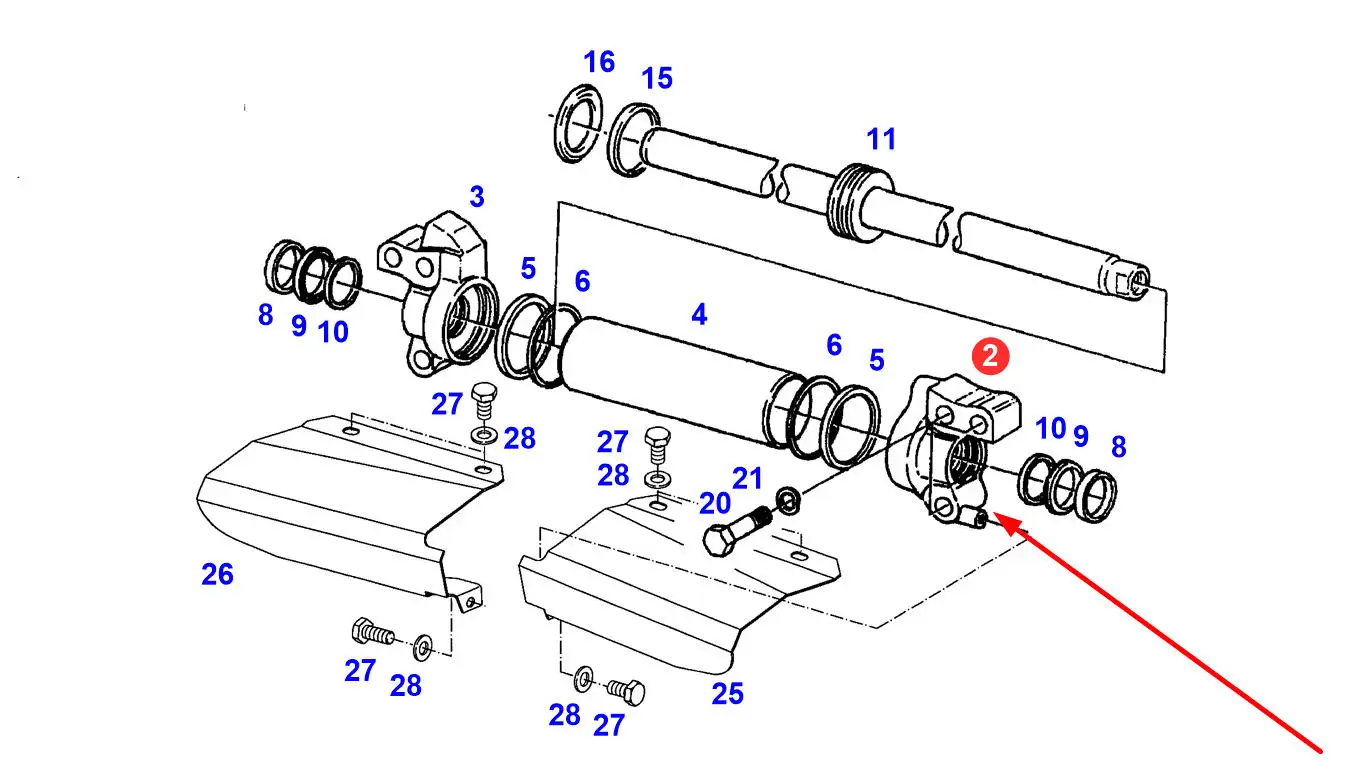 Oryginalna prowadnica tłoczyska siłownika hydraulicznego, stosowana w ciągnikach rolniczych marki Fendt.