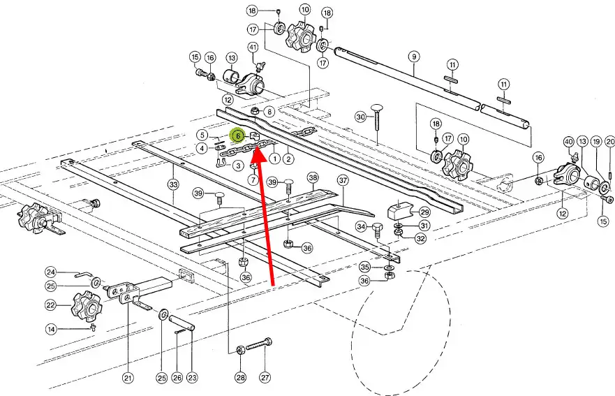Oryginalny uchwyt podłogi przyczepy, stosowany w przyczepach samozbierających marki Claas.