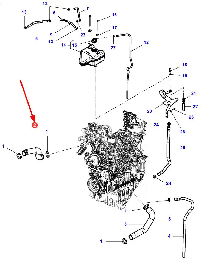 Oryginalny przewód gumowy układu chłodzenia o numerze katalogowym ACW0120380 do zastosowania w ciągnikach rolniczych marek Massey Ferguson oraz Valtra.