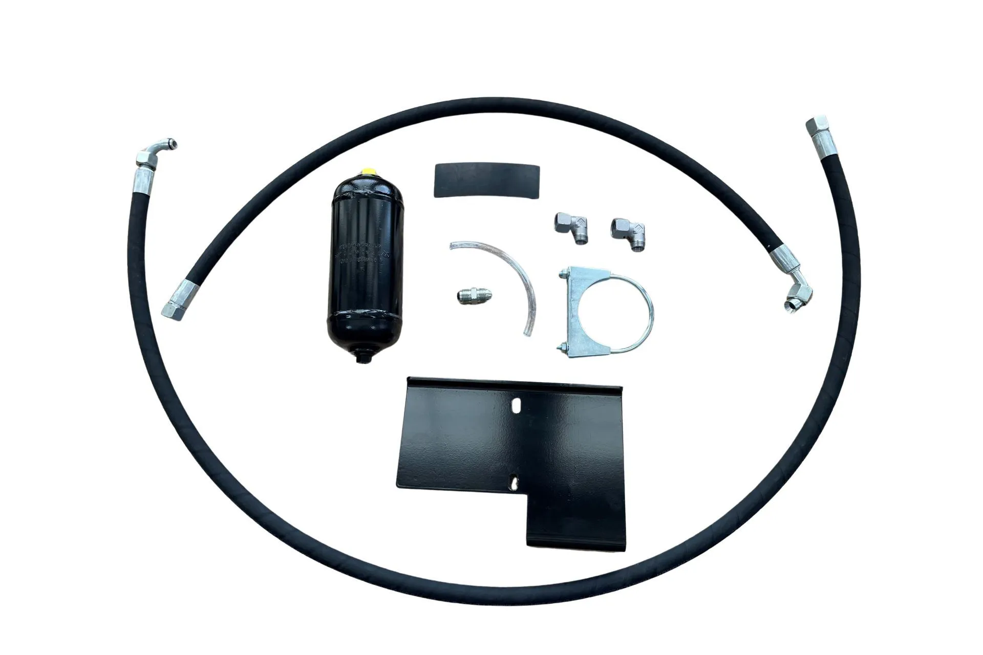 Zestaw niezbędnych części potrzebnych do zamontowania tłumika układu hydraulicznego o numerze katalogowym ARP5000M.T.U.H, stosowany w ciągnikach rolniczych marki Arbos serii P5000 z silnikami Kohler.