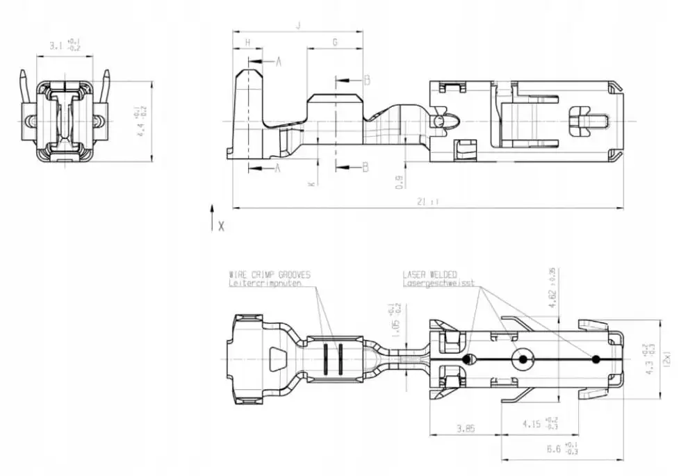 Oryginalny konektor marki Bosch na przewód o przekroju żyły 1,5 mm2 – 2,5 mm2, rodzaj żeński 2,8 mm o numerze katalogowym BDK1928498057, szeroko stosowany w maszynach i pojazdach wielu marek.