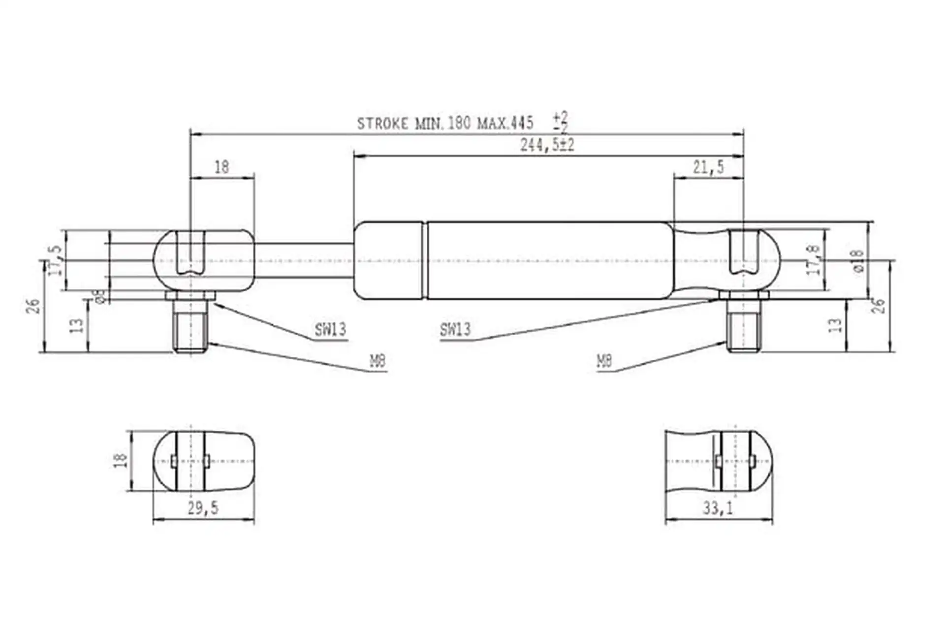 Sprężyna gazowa L445 mm 250N Stabilus