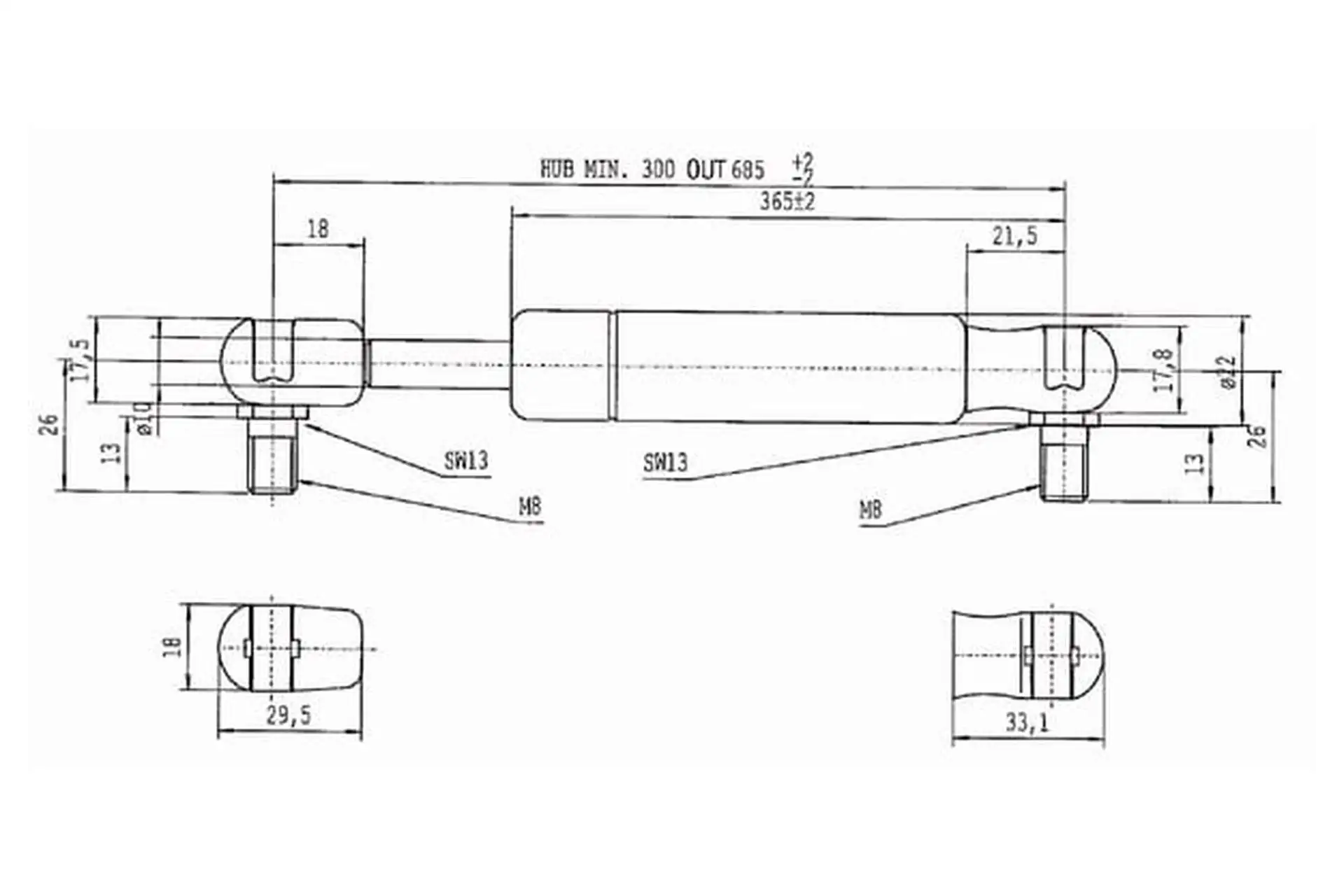 Sprężyna gazowa L685 mm 1150N Stabilus