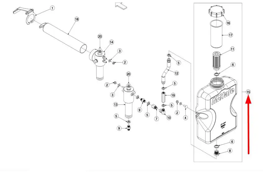 Oryginalny zbiornik oleju 8l. o numerze katalogowym CPL00007, stosowany w prasach i prsasoowijarkach marki McHale.