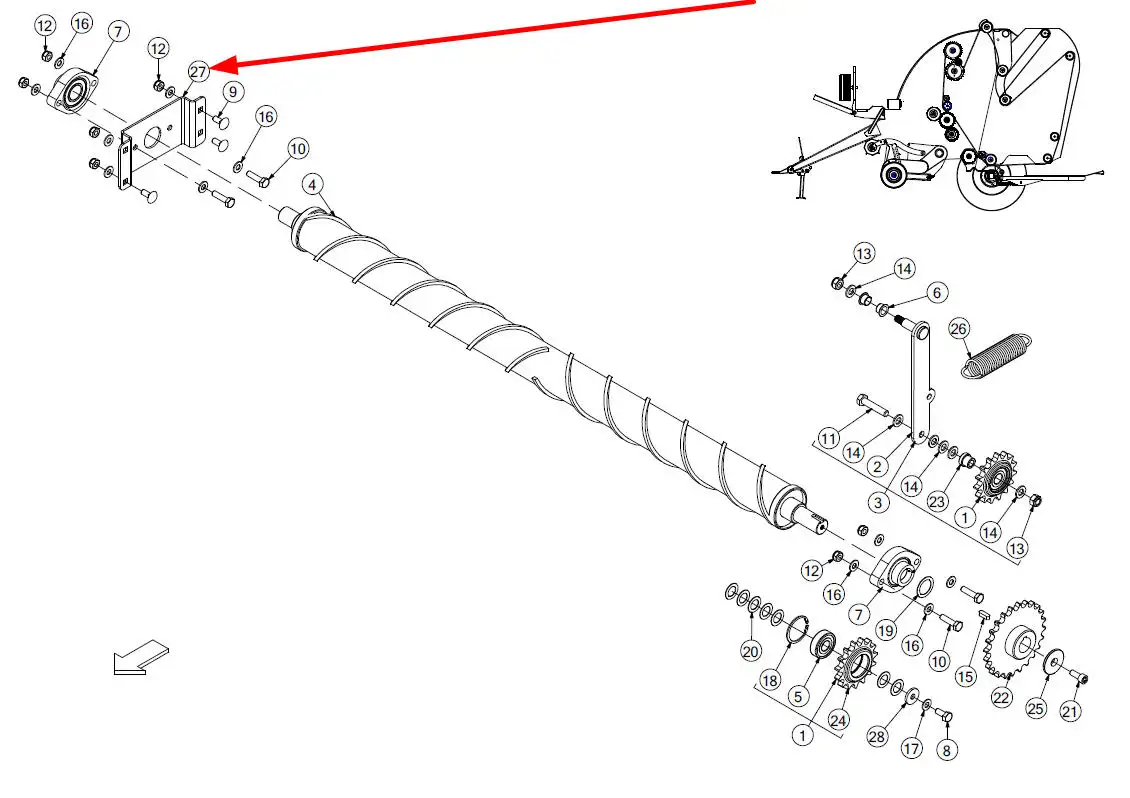 Oryginalne mocowanie ślimaka górnego o numerze katalogowym CZD05038, stosowane w prasach, prasoowijarkach marki McHale.