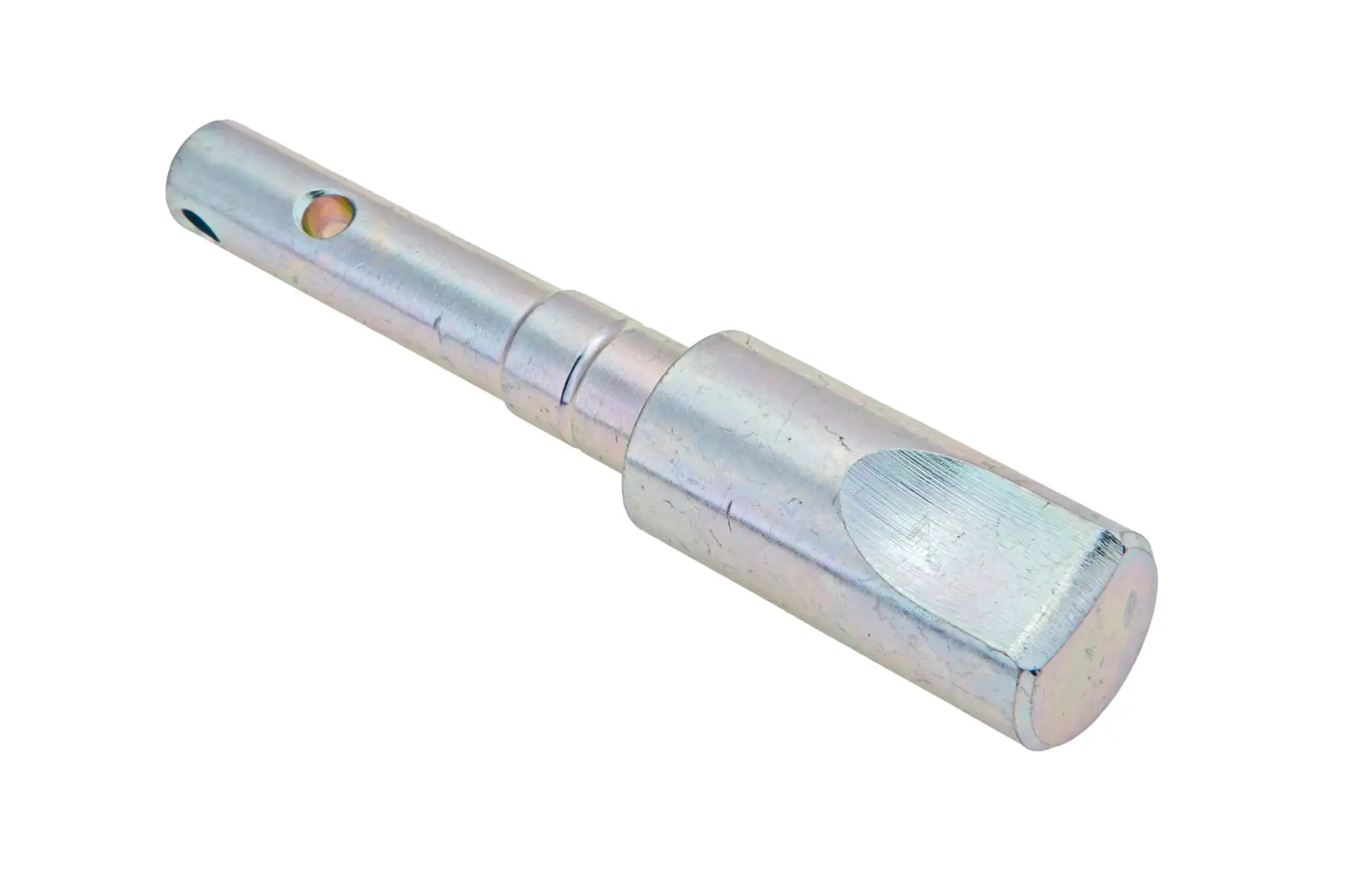 Oryginalny sworzeń łacznika górnego o wymiarach 14 x 15.5 x 24 x L= 75/127.6 mm i numerze katalogowym F199870050040, stosowany w ciągnikach rolniczych marek Massey Ferguson oraz Fendt.