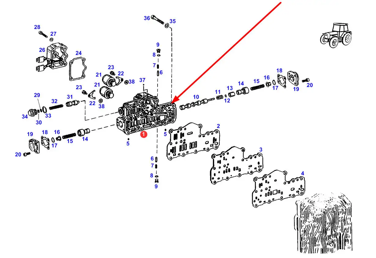 Oryginalny blok elektrozaworów o numerze katalogowym F824101095020, stosowany w ciągnikach rolniczych marki Fendt.