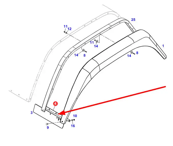 Oryginalne, pochodzące z demontażu, mogące nosić ślady użytkowania mocowanie błotnika o numerze katalogowym FC404700051020, stosowane w ciągnikach rolniczych marki Fendt.