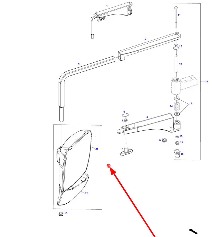 Oryginalne lustero lewe o numerze katalogowym G743810150010, stosowane w ciągnikach rolniczych marki Fendt.