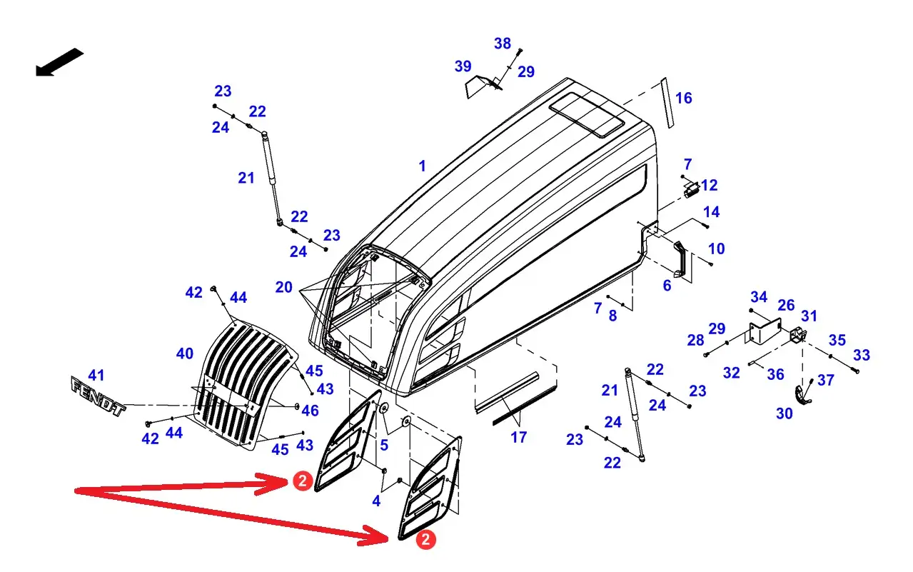 Oryginalna osłona boczna maski o numerze katalogowym H117501020130, stosowana w ciągnikach rolniczych marki Fendt.