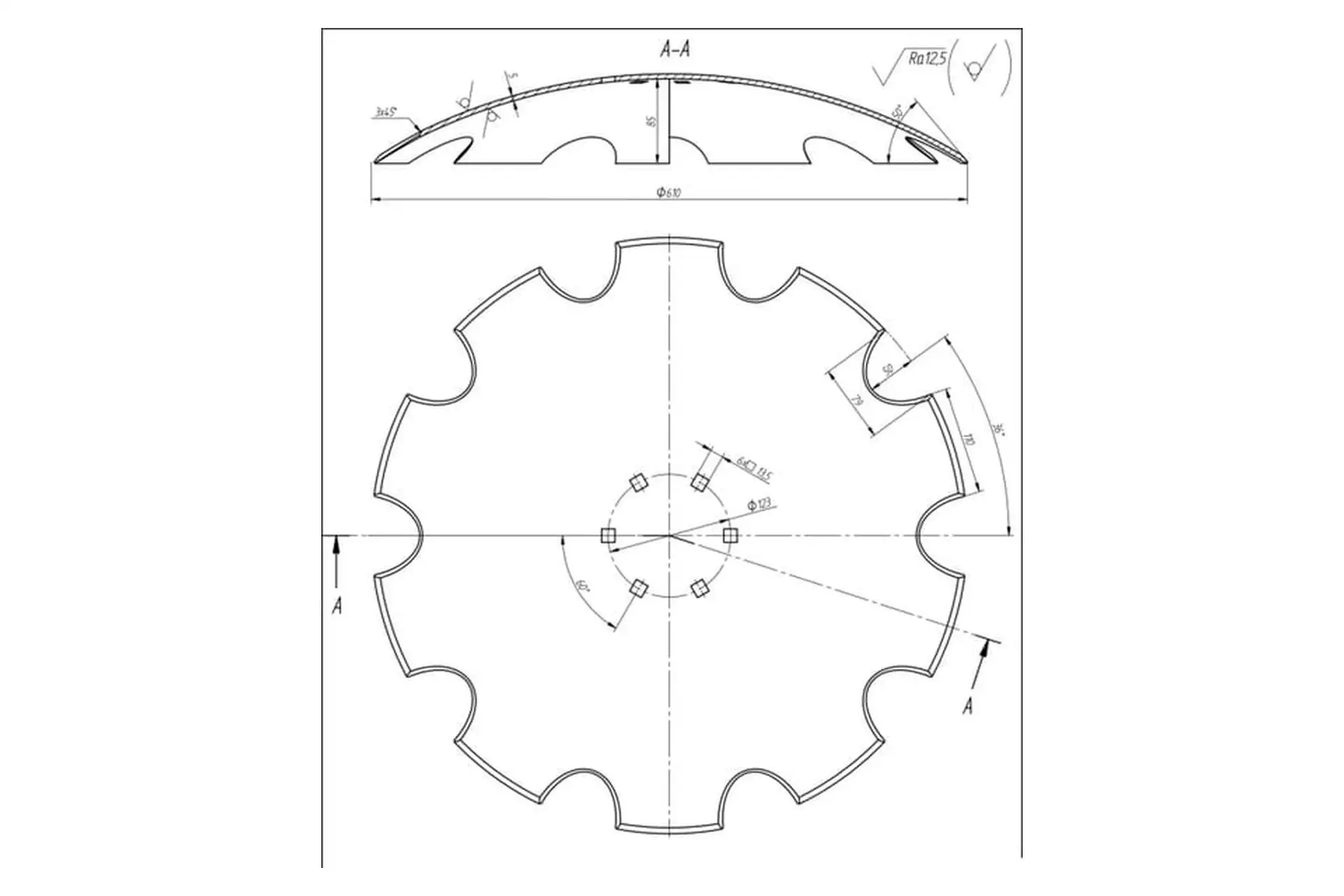 Talerz brony uzębiony, 610×5 mm, 6 otworów 120 mm rozstaw