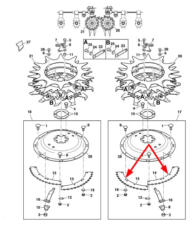 Oryginalny zestaw noży rotora o numerze katalogowym LCA95958, stosowany w przystawkach do kukurydzy marki Kemper.